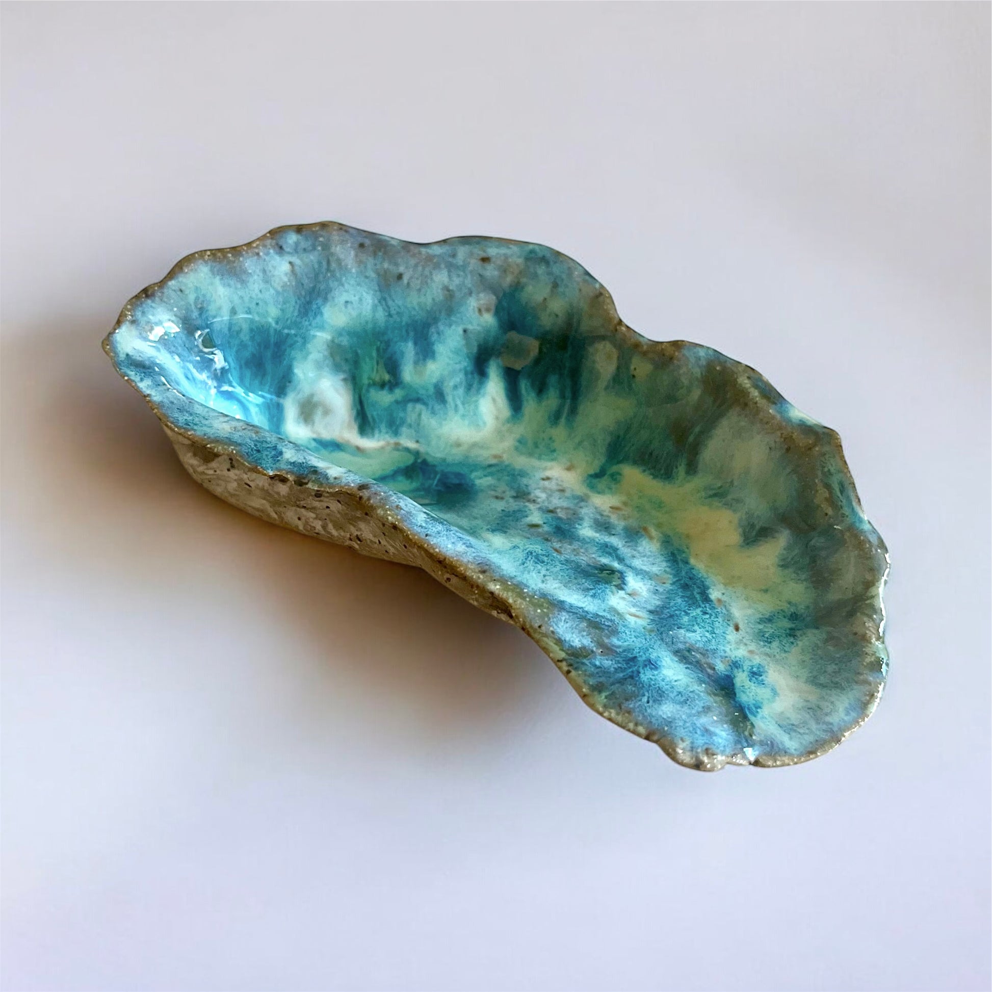 hand built oyster dish to hold rings, incense, soap, or to be used as a decoration on its own. made with brown speckled stoneware