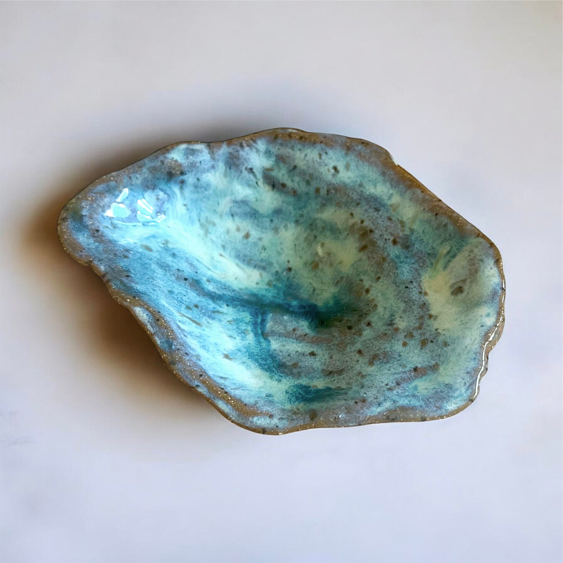 hand built oyster dish to hold rings, incense, soap, or to be used as a decoration on its own. made with brown speckled stoneware